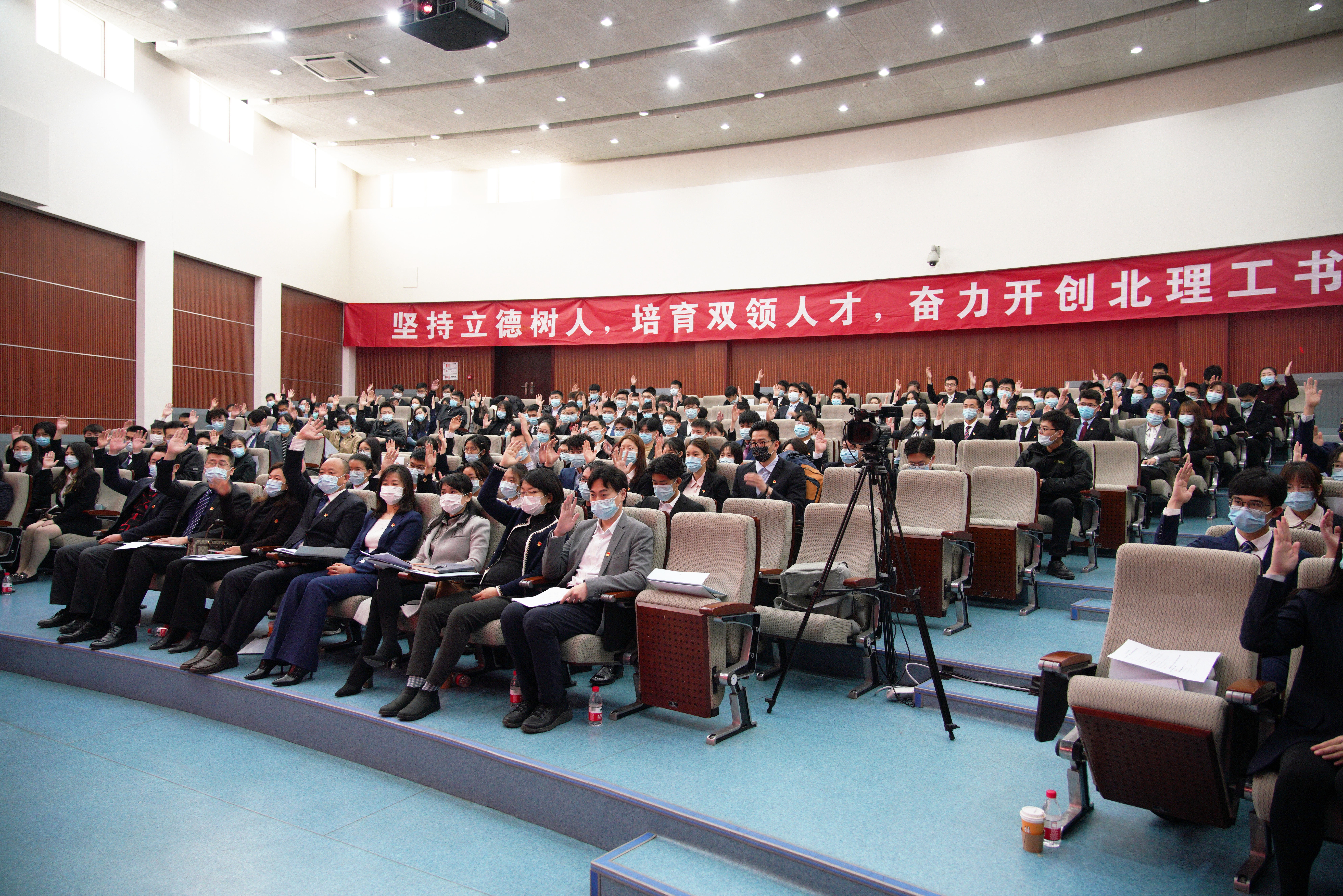 在学校党委的指导下,书院党委于2021年3月27日在良乡校区召开党员大会。大会设综合教学楼报告厅一个主会场和综合教学楼演艺厅、图书馆音乐厅两个分会场,共465名党员参加大会。校党委副书记包丽颖、党委组织部副部长张舰月出席大会,会议由书院党委党员大会筹备工作领导小组副组长陆宝萍主持。大会在庄严的国歌声中开幕。